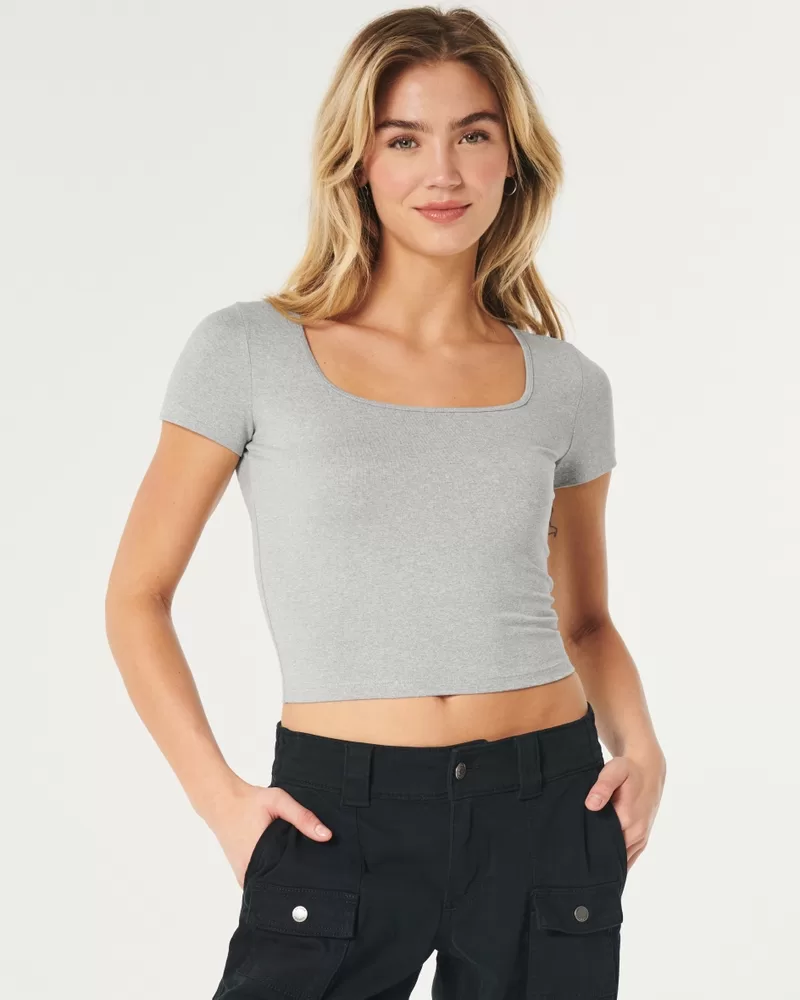 A comfy baby tee in soft stretch fabric made with a seamless look and feel. Square neckline, short sleeves. Slim Fit. Imported.