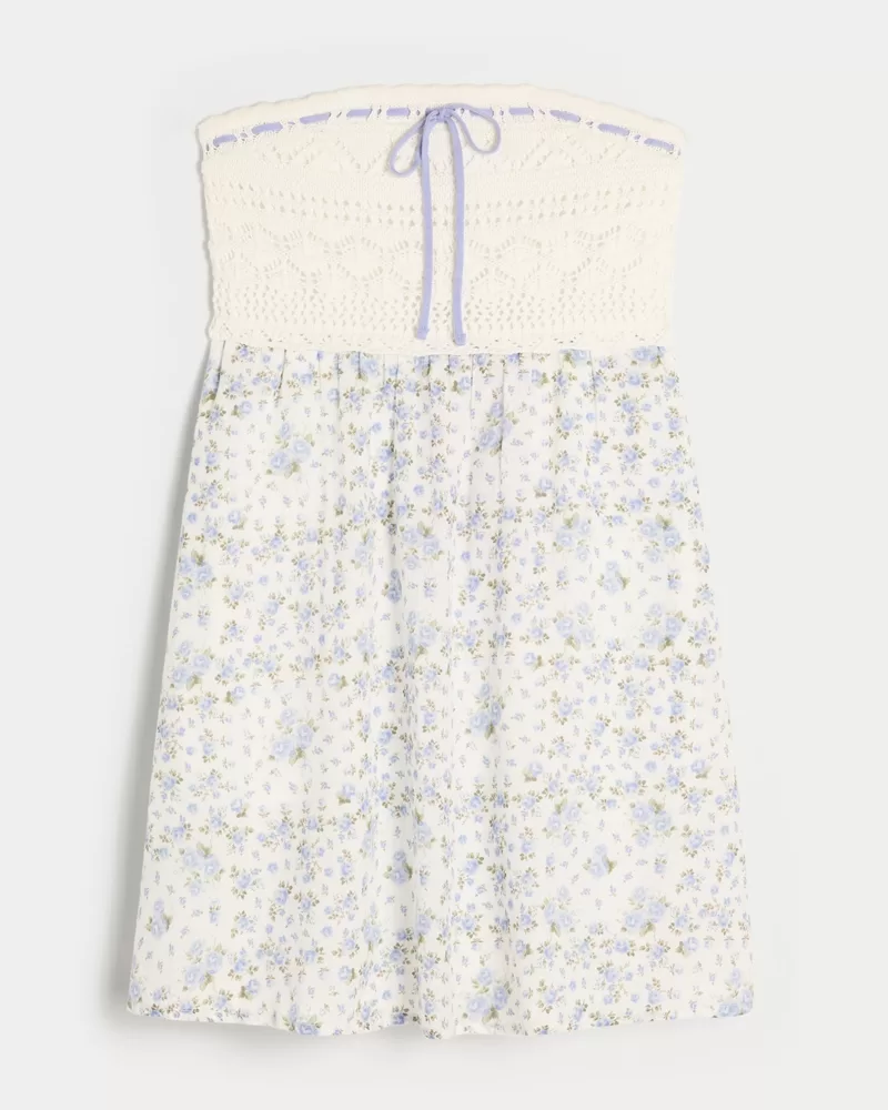 Strapless Crochet-Style Mix Mini Dress