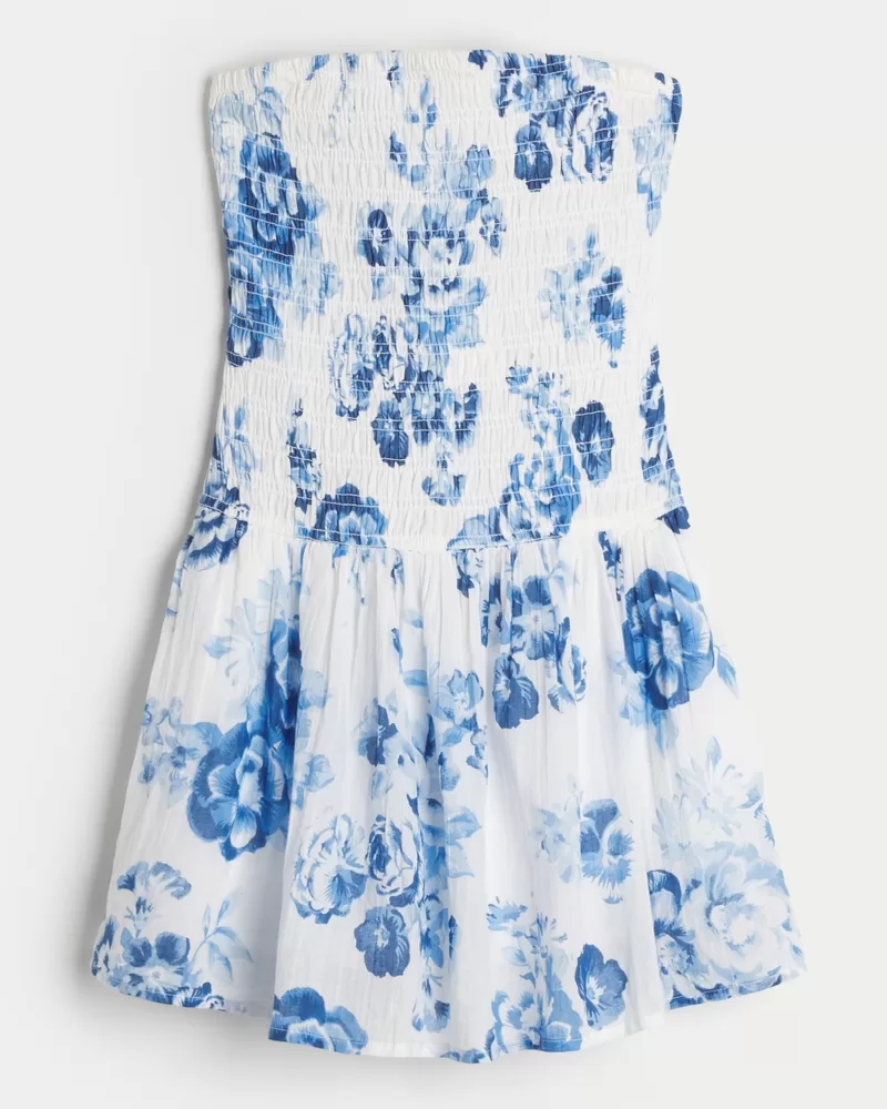 Super cute, soft and fun, this strapless dress features removable straps, hidden woven shorts, pockets and lace detailing at the skirt. Smocked bodice. Imported.
