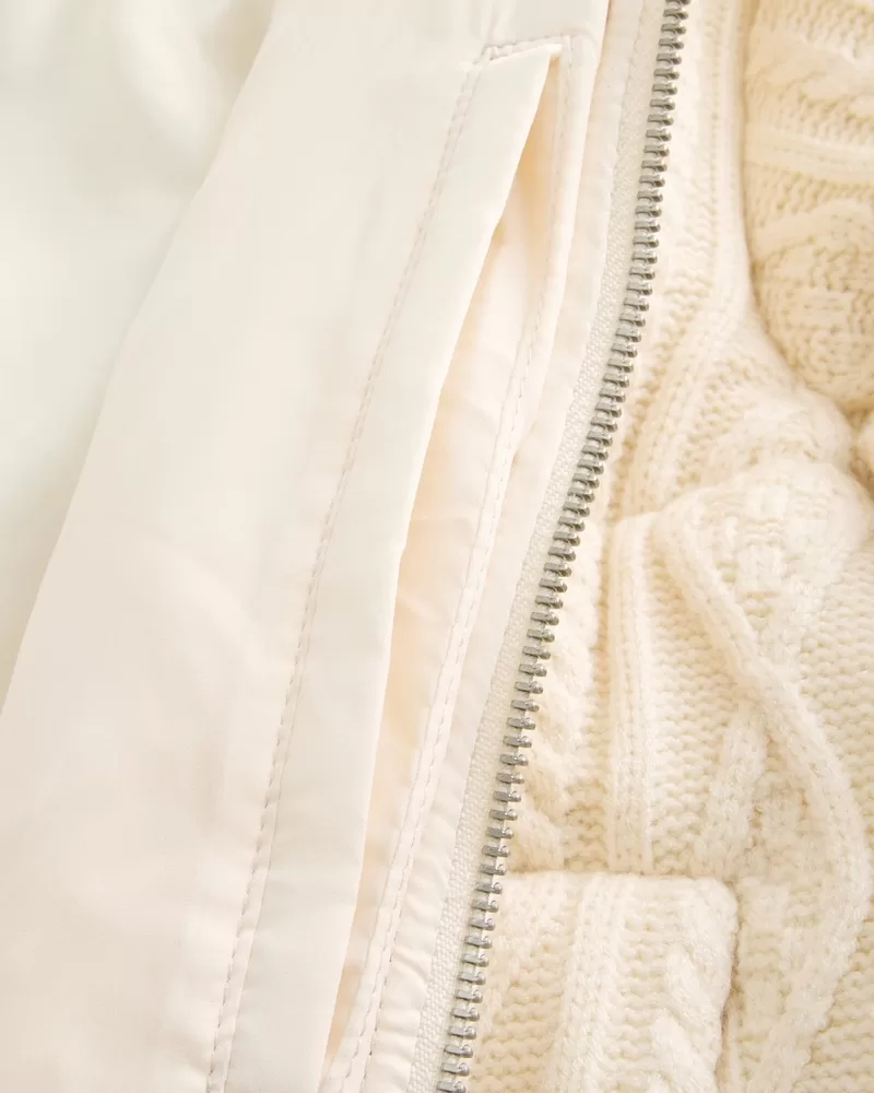 Sweater-Knit Mini Puffer Jacket