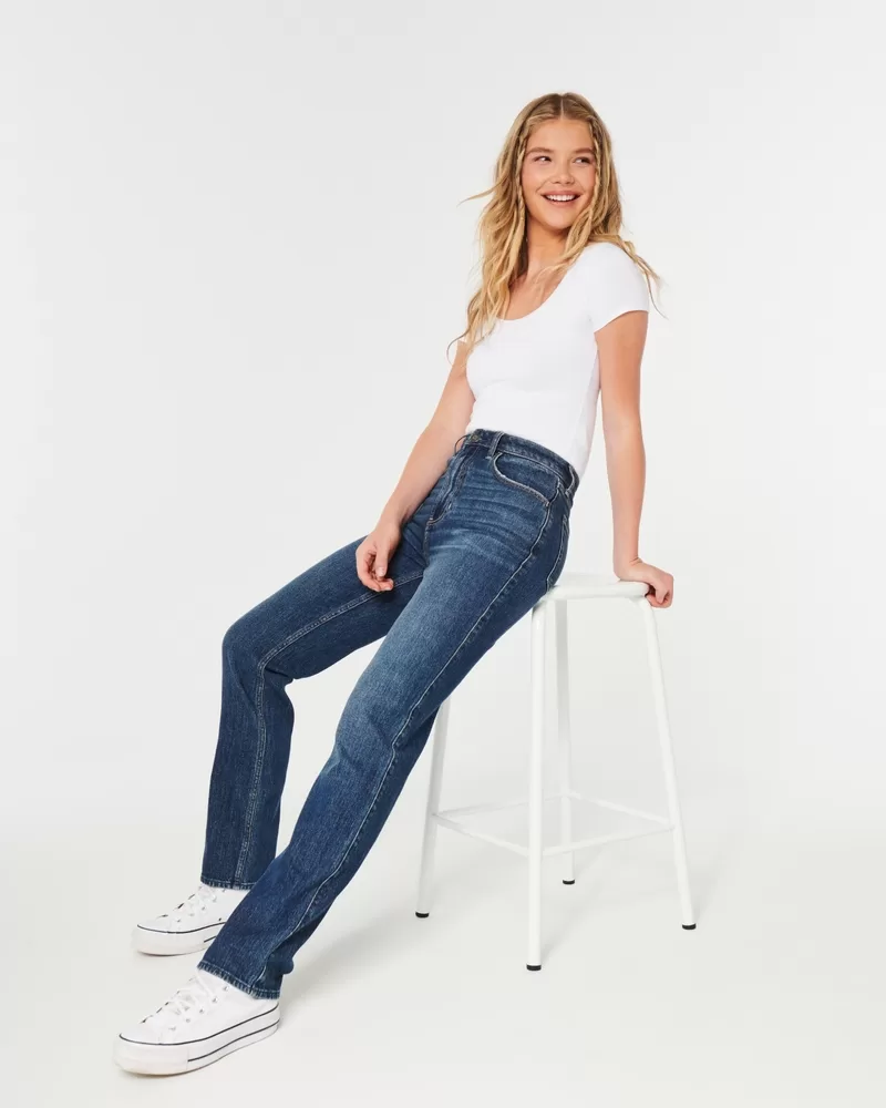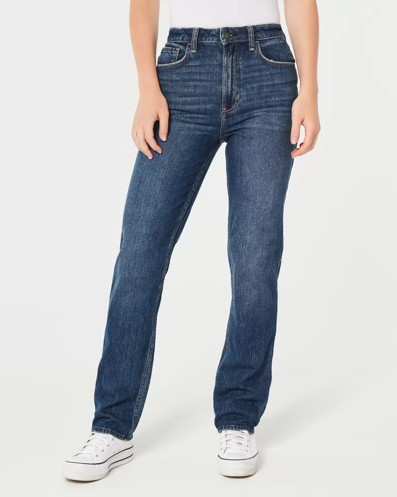 Designed with a flattering ultra high-rise waist, these dark wash jeans feature a comfortable straight leg. Made with our ultra-comfortable Vintage Stretch denim.