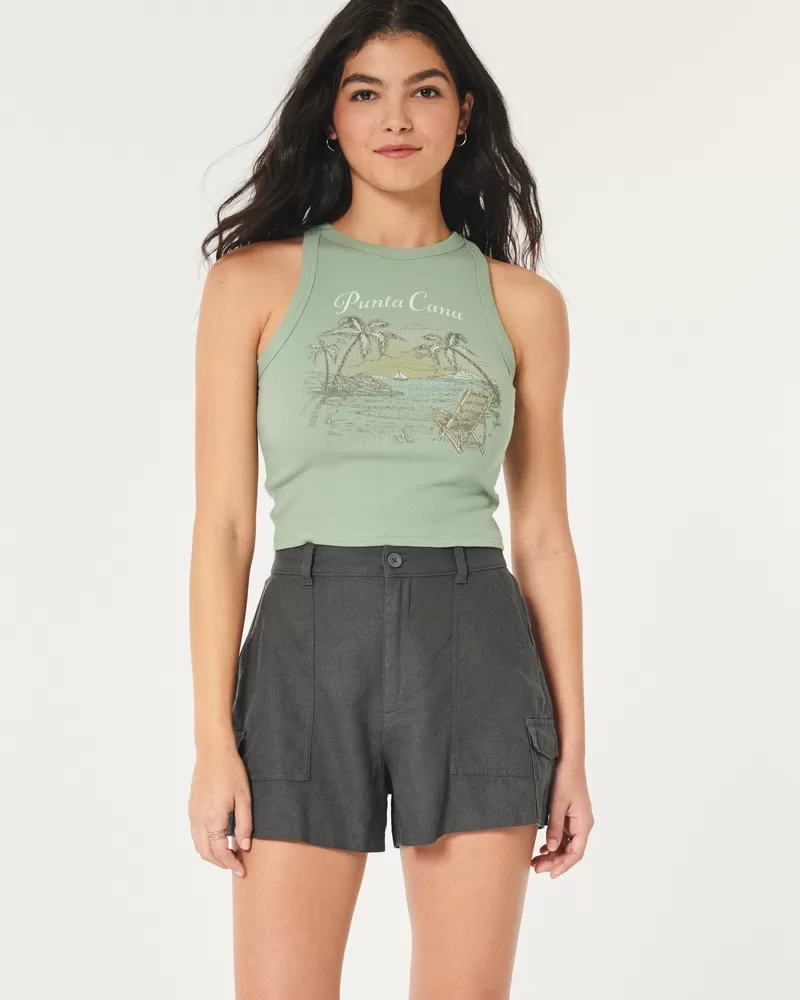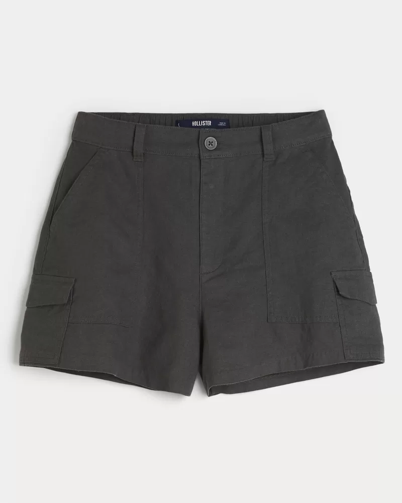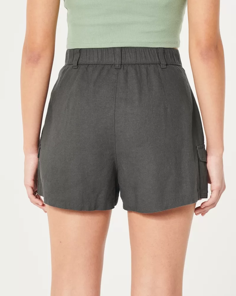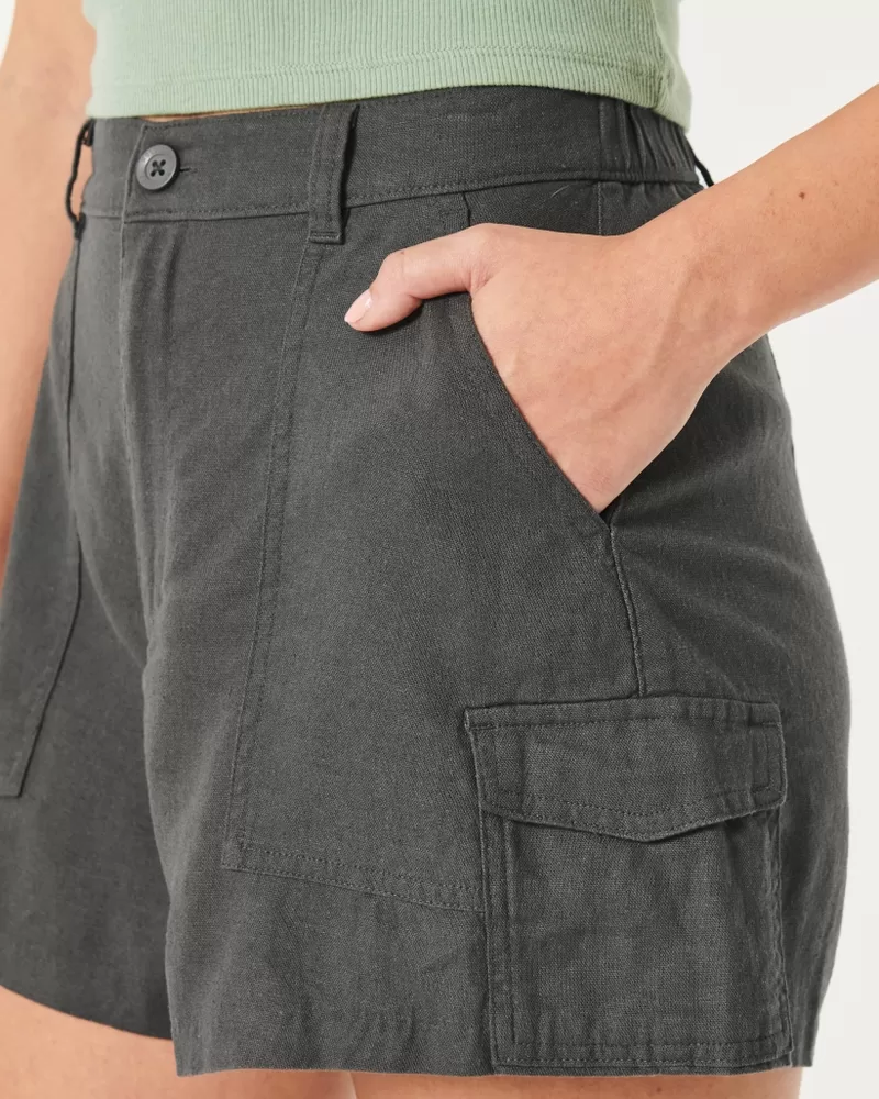 Ultra High-Rise Linen-Blend Soft Cargo Shorts