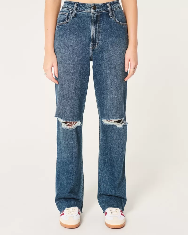 Ultra High-Rise Ripped Dark Wash Dad Jeans