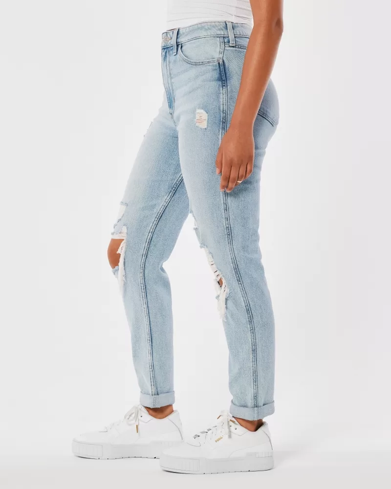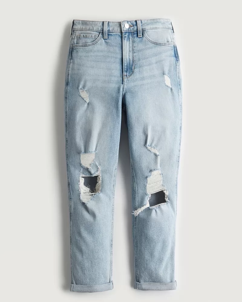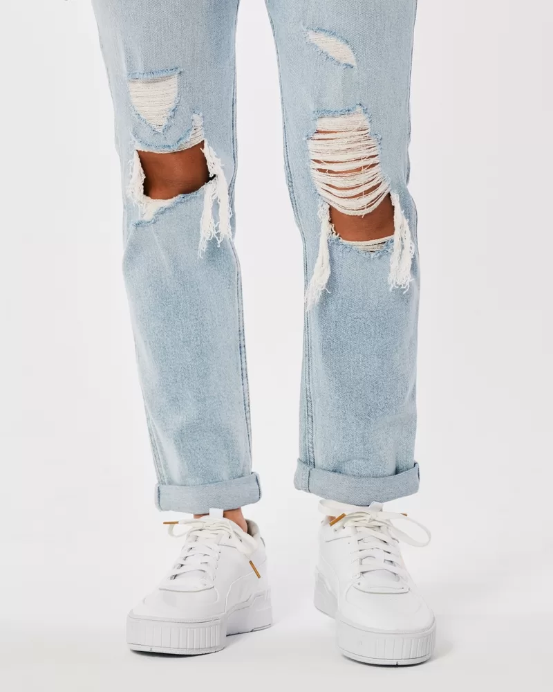 Ultra High-Rise Ripped Light Wash Mom Jeans
