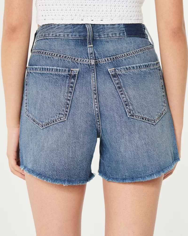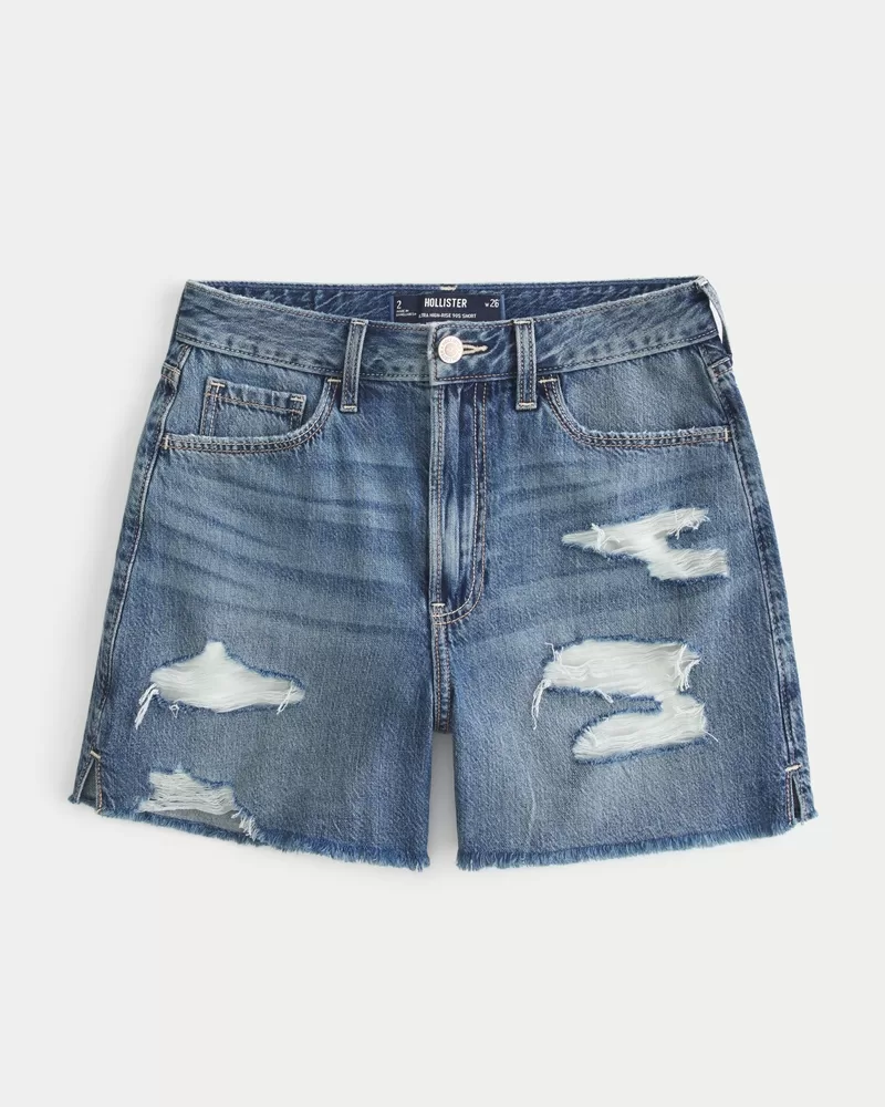 Ultra High-Rise Ripped Medium Wash 90s Denim Shorts 5″