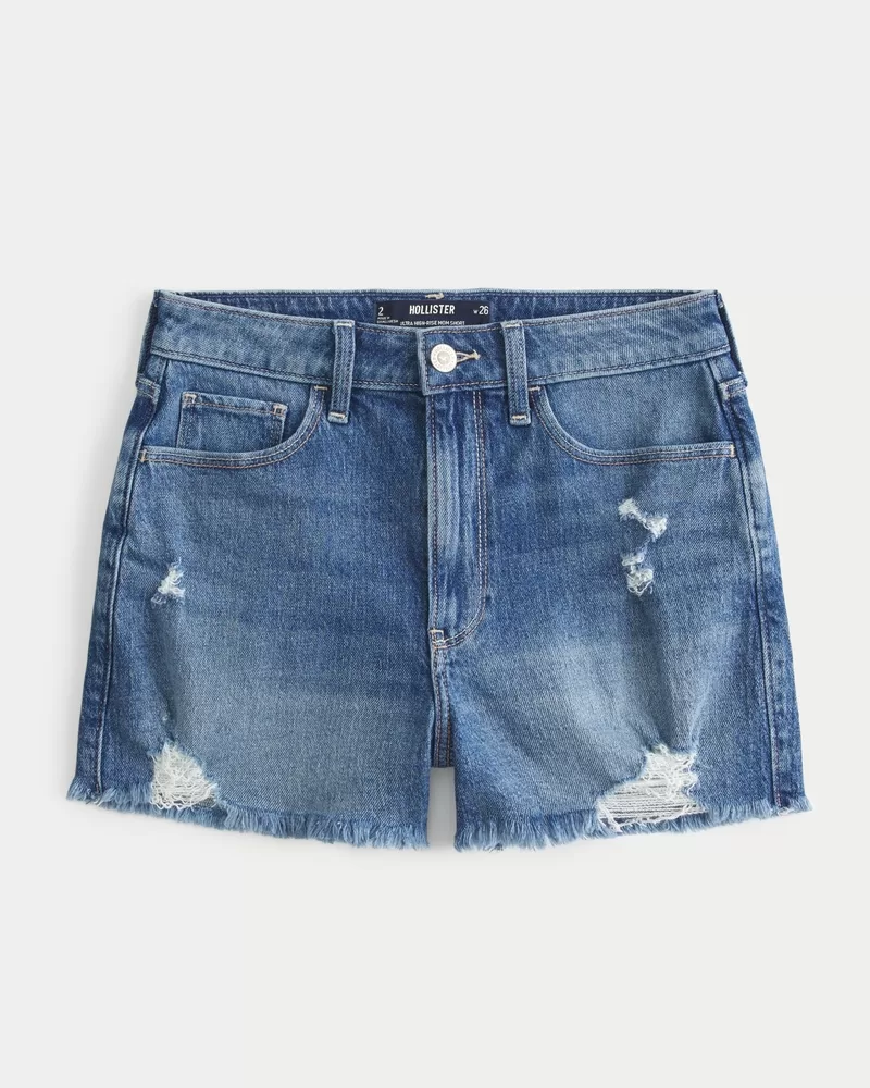 Ultra High-Rise Ripped Medium Wash Denim Mom Shorts