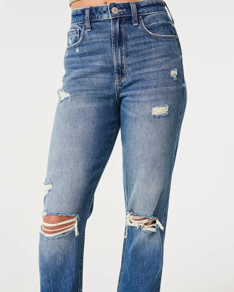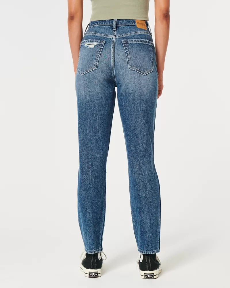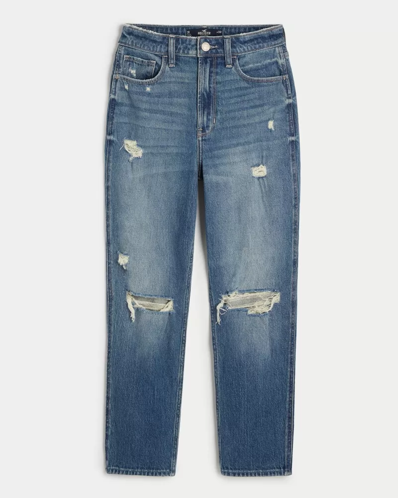 Ultra High-Rise Ripped Medium Wash Mom Jeans